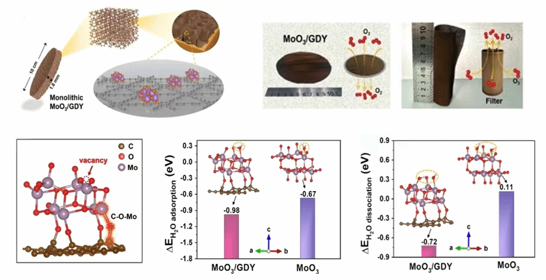 We have developed various advanced catalytic and control strategies to address the challenges of VOCs control, such as low efficiency, high energy consumption, and easy deactivation. By constructing unique structures such as single atoms, oxygen vacancies, and ordered macropores, a series of catalysts such as precious metal Pt based catalysts and transition metal Cu based catalysts have been developed. The catalytic active sites and mechanisms have been deeply explored, revealing the structure-activity relationship of the catalysts, and achieving efficient catalytic oxidation of VOCs at low or even room temperature, significantly reducing energy consumption. In addition, by innovatively utilizing the unique electronic structure of graphitic acetylene and sp hybridized carbon, composite materials such as MoO3/GDY and CuO/GDY have been successfully developed, enhancing the activity and stability of catalytic decomposition of ozone and oxidation of VOCs. Our work is dedicated to efficient and low-carbon control of volatile organic pollutants, providing clear guidance for the industrial development of efficient VOCs catalytic oxidation equipment.
