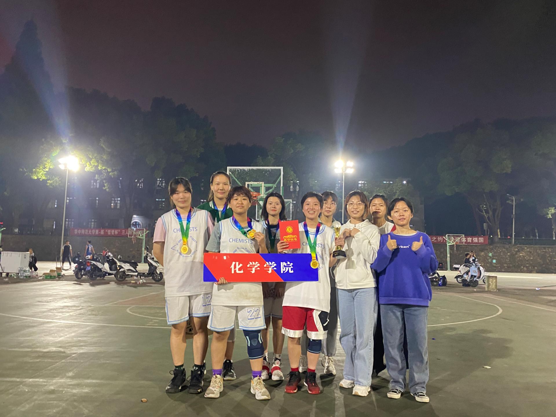 In the three-player basketball league that lasted for three days, the members of my group won the first "Xin Guan Cup" three-player basketball league for the women's basketball team of the College of Chemistry.