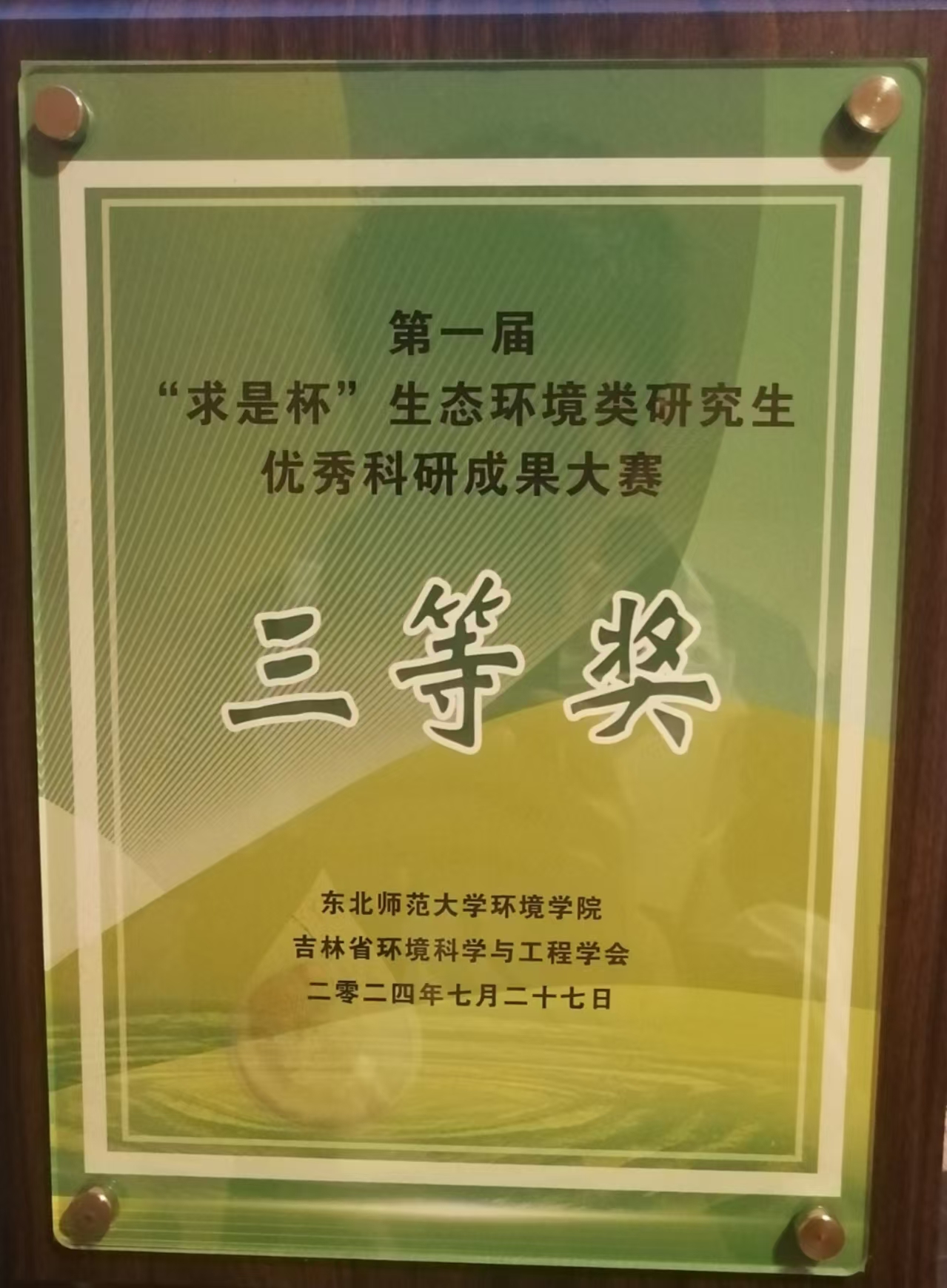 Guo Weihong, Li Pan, and Huang Xianxian from the research group won the third prize in the first "Qiushi Cup" Outstanding Research Achievement Competition for Ecological Environment Graduate Students