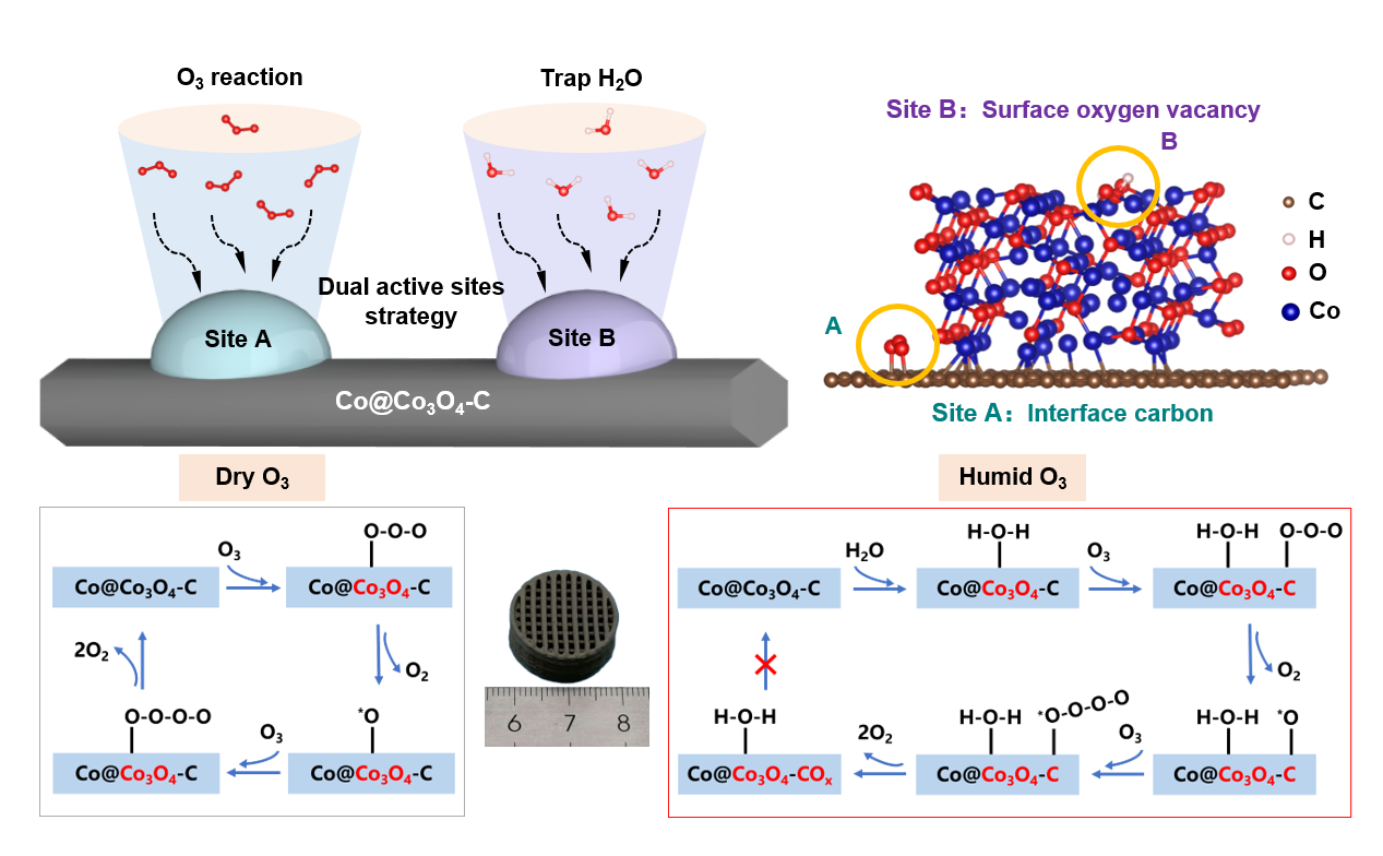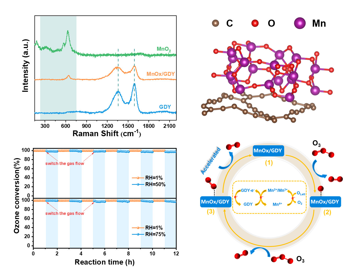 近年来,我国臭氧(O3)污染日益严重,对人类健康和生态系统造成极大的威胁。长期暴露于高浓度的臭氧(WHO, 100 ppb)可能导致永久性肺损伤、呼吸系统疾病和心血管疾病等。 我们致力于开发新型高效催化剂,主要集中在钴碳材料、二氧化锰及其石墨炔复合材料等,深入探究催化活性位点和催化机制,揭示催化剂的构效关系,为高效催化O3分解提供明确的指导。同时,拓宽研究方向,开发电化学去除臭氧、新型微液滴催化分解O3的应用和机器学习等,为臭氧污染治理提供新的研究思路。