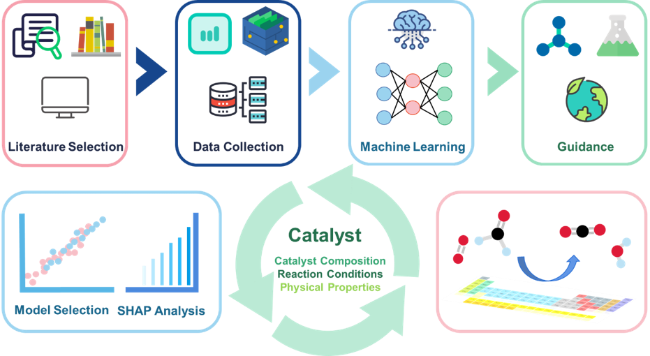 机器学习旨在通过计算机程序让计算机自动从数据中学习和改进,让计算机具备从经验中学习和自主决策的能力,从而生成模型并应用于未知数据,实现预测、分类、聚类、回归等任务。我们致力于利用机器学习辅助筛选高性能催化剂;阐明催化剂电子结构与催化性能间的标度关系;进行海量数据间的相关性研究。